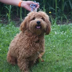 We do not own Pintxo but many want to see the daddy of Sophie’s babies so we thought we would post his picture as well. He is on the small end of mini Labradoodles which intentionally hopes to breed smaller pups as well.